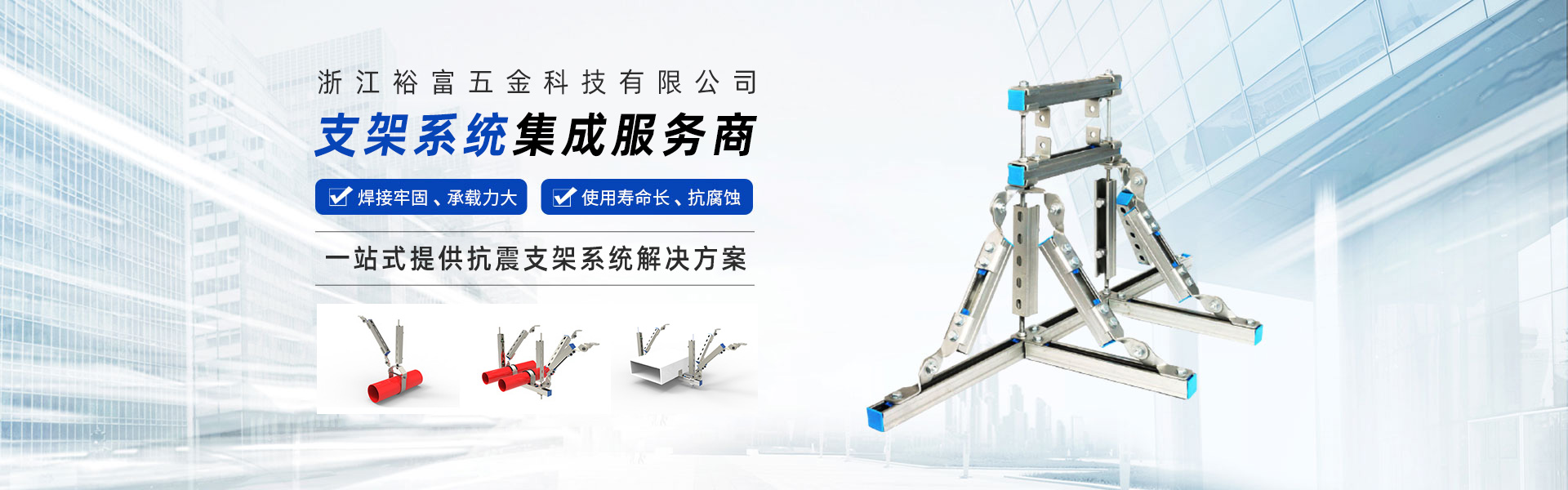 浙江裕富五金科技有限公司位于美麗的杭州臨安青山湖畔,注冊(cè)資金5000萬(wàn)人民幣。是一家集研發(fā)、設(shè)計(jì)、制造、銷售、安裝、技術(shù)服務(wù)于一體的,專業(yè)從事抗震支吊架、管廊支吊架、綜合承重支吊架等,多功能、多元化的現(xiàn)代新興科技企業(yè)。 公司技術(shù)力量雄厚、設(shè)備齊全、工藝先進(jìn)、管理體系高效完善,在注重產(chǎn)品設(shè)計(jì)、選材、結(jié)構(gòu)工藝等細(xì)節(jié)基礎(chǔ)上,嚴(yán)格按照GB/T37267-2018、GB/T9978.1-2008等國(guó)家標(biāo)準(zhǔn)進(jìn)行生產(chǎn)和管理,立足本土并扎根施工現(xiàn)場(chǎng),多次調(diào)研測(cè)試并持續(xù)改進(jìn),產(chǎn)品通過(guò)了國(guó)家建筑工程質(zhì)量監(jiān)督檢驗(yàn)中心的檢測(cè),打造了“裕富欣”品牌。